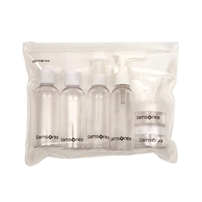 Dieses praktische Reiseflaschenset enthält 4 Kunststoffflaschen mit Druck-, Sprüh-, Pump- und Ausgießverschluss zum Einpacken, verpackt in einem Beutel mit Reißverschluss.