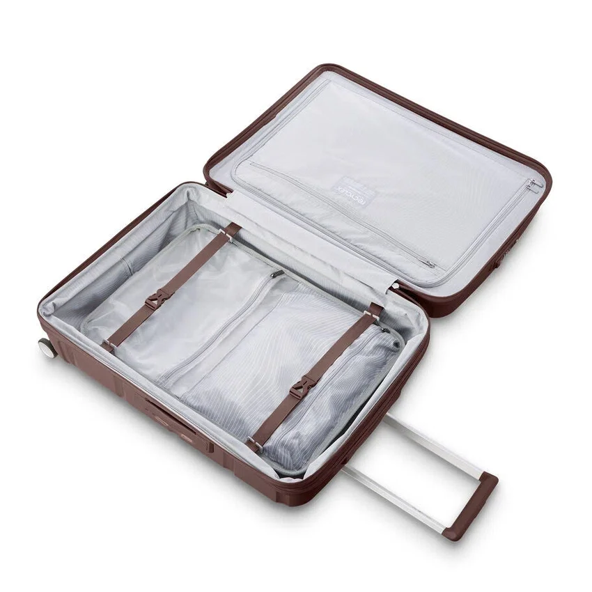 - Dieses elegante und schlanke Modell ist startklar – und lässt keine Wünsche offen: vom geformten Trolleygriff bis hin zu den leicht zu greifenden Griffen an Oberseite und Seiten. Mit integrierten Extras wie einem eingebauten TSA-Schloss sowie einem äußerst anpassungsfähigen Innenraum, der mit unserem umweltbewussten Recyclex®-Gewebe ausgekleidet ist, verbindet dieses unverzichtbare Reiseutensil Form und Funktion auf perfekte Weise.