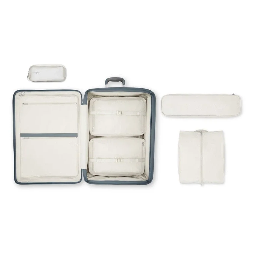 - Der große Hartschalen-Spinner, speziell aus 100 % Polycarbonat gefertigt, enthält einen flach zusammenlegbaren Schuhbeutel und herausnehmbare Packwürfel, die gleichzeitig als Kompressionspanel dienen, um Ihre Kleidung ordentlich und wichtige Gegenstände gut organisiert zu halten.