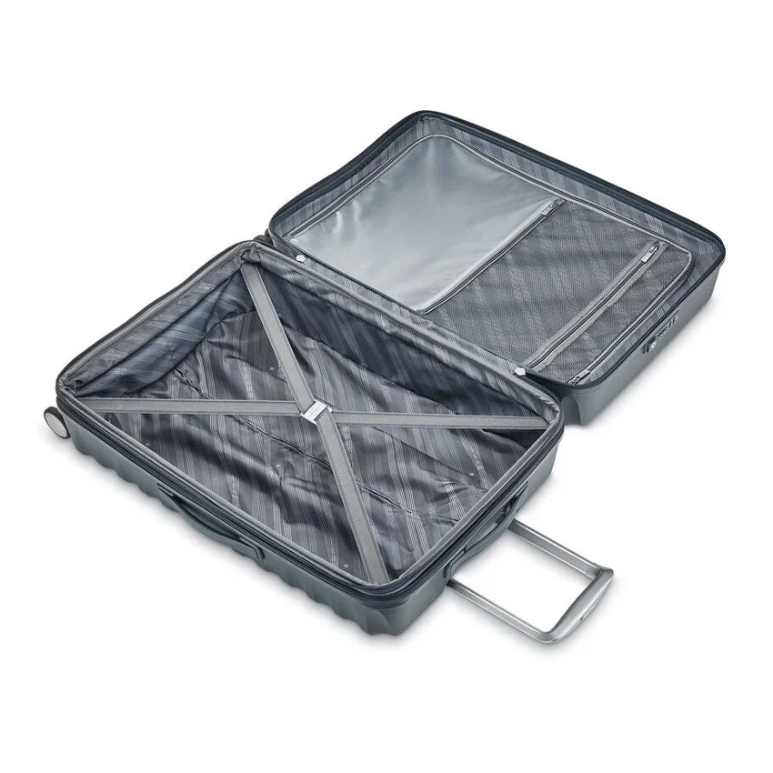 Ihr aufgegebenes Aufgabegepäck besticht durch seine kunstvoll geformte Polypropylen-Schale, die zudem widerstandsfähig gegen Beschädigungen beim Gepäcktransport ist. Das dreidimensionale Äußere öffnet sich zu einem geräumigen Innenraum, der sich für zusätzliche Packkapazität weiter vergrößern lässt. Integrierte Taschen sorgen dafür, dass Ihre Habseligkeiten ordentlich organisiert bleiben.