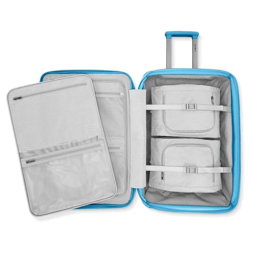 Das 3-teilige Gepäck-Set „The Venue“ ist die perfekte Mischung aus Mode und Reisen. Der KompressPak™-Trennsteg, der WetPack™ und die einzigartigen Packwürfel sorgen für nahtlose Organisation. Die doppelten Spinner-Rollen rollen mühelos, während ein versteckter Trolley-Haken das Mitführen zusätzlicher Taschen zum Kinderspiel macht. Außerdem können Sie Ihre Gegenstände mit den integrierten TSA-Schlössern sicher verwahren.