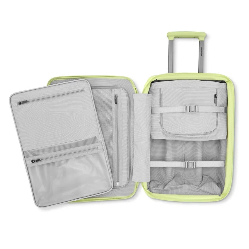 Mit einem Gewicht von nur 5,7 lbs bietet der Venue X Handgepäckkoffer dank integrierter Trennwand, Wetpack™ und erweiterbarem Packwürfel nahtlose Organisation. Zwei Spinner-Rollen sorgen für mühelosen Transport, während ein diskret versteckter Trolley-Haken das Mitführen zusätzlicher Taschen zum Kinderspiel macht.
