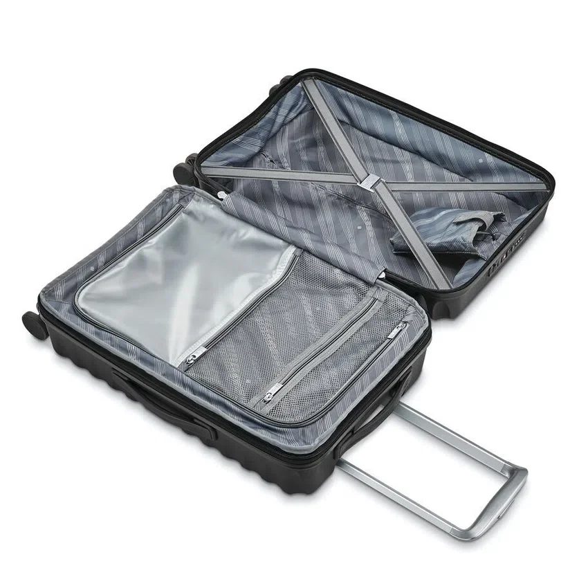 Fließende, geriffelte Konturen, stimmiges Design, moderne Innovation. Nehmen Sie die perfekte Mischung aus Mode und Technologie mit Voltage mit als Handgepäck mit. Laden Sie Ihre Geräte über einen in das TSA-zugelassene Schlosspanel integrierten USB-Anschluss auf. Schützen Sie Ihre Tasche und Ihre Habseligkeiten mit dem leichten und dennoch extrem strapazierfähigen Außenmaterial. Und innen sorgen integrierte Wetpak™- und Netzfächer für Ordnung. Alles in einem Handgepäckkoffer, der die Größenbeschränkungen der meisten Fluggesellschaften garantiert erfüllt.