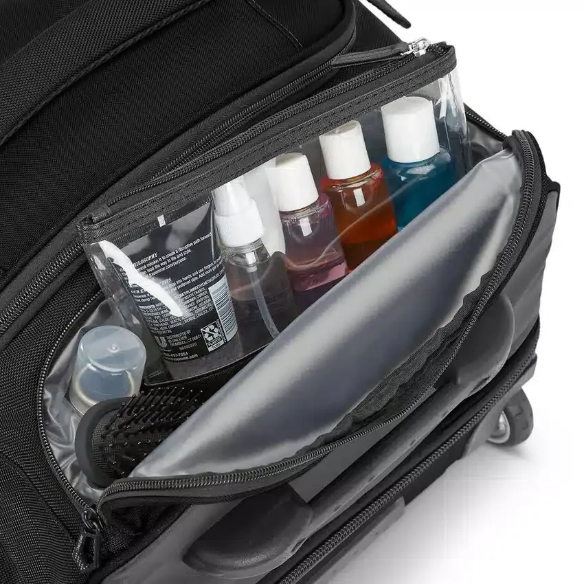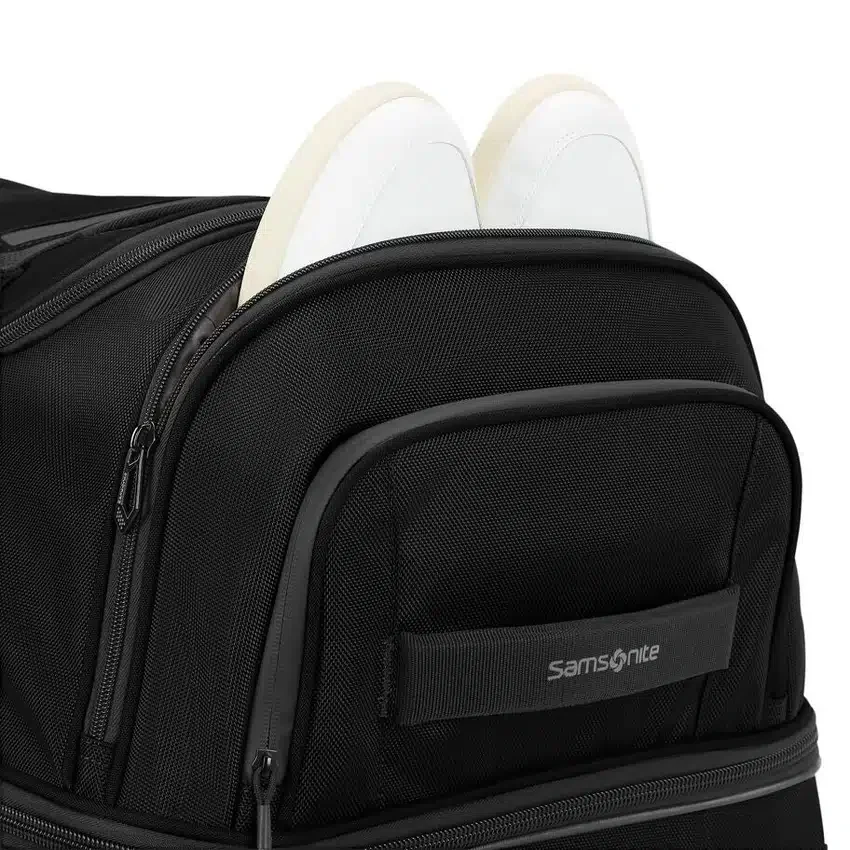 Die wasserabweisende Seitentasche eignet sich perfekt für Schuhe oder nasse Gegenstände