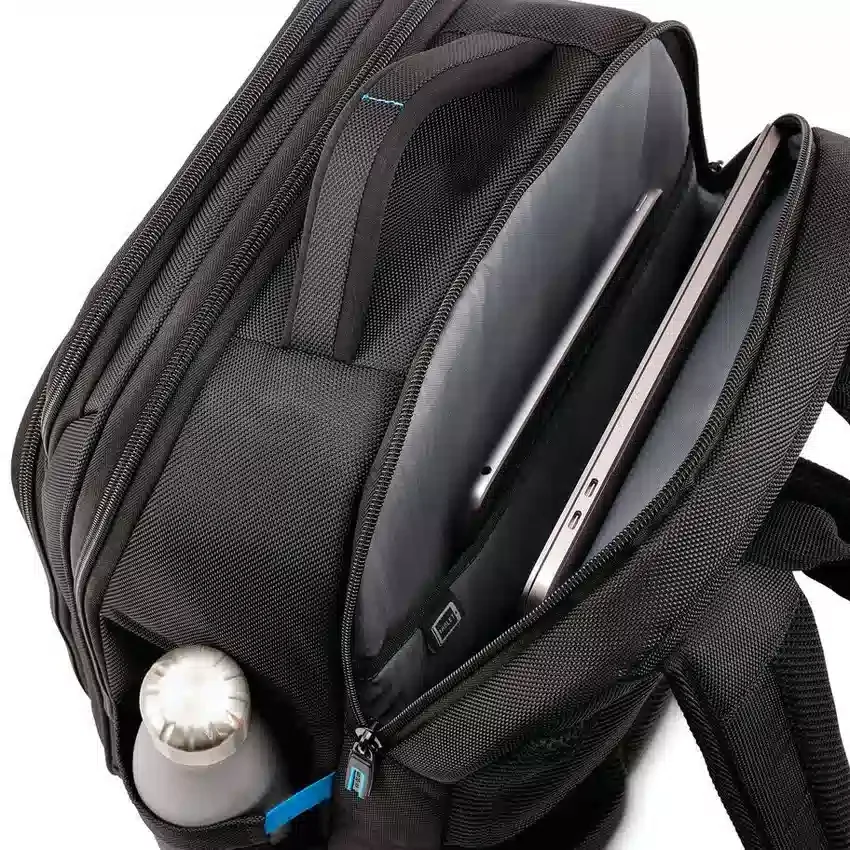 Das spezielle, gepolsterte Technikfach ist für Laptops bis zu 15,6 Zoll ausgelegt, und in der separaten, mit Trikot gefütterten Tablet-Hülle finden Tablets in Standardgröße Platz.