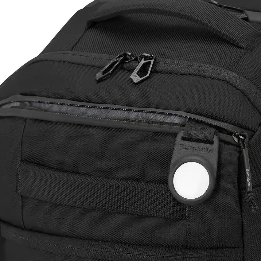 Fest angebrachter Apple AirTag™-Halter in der oberen Stautasche (AirTag™ nicht im Lieferumfang enthalten)